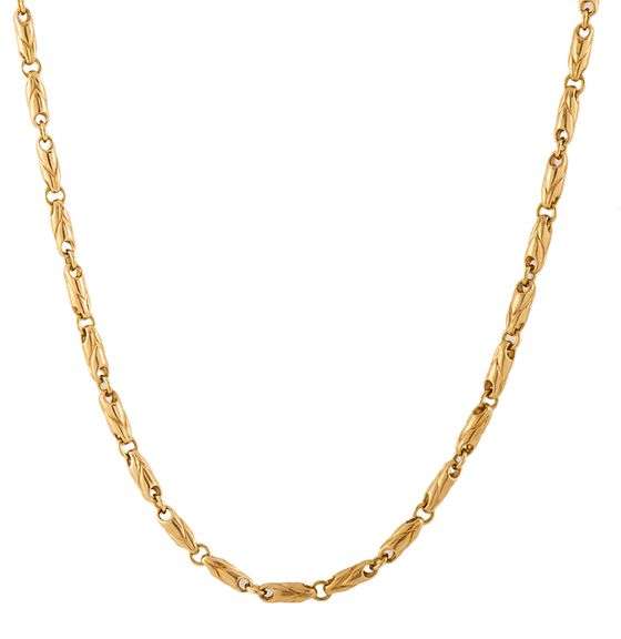 14kt Yellow Gold Mioro Signed Fancy Link 24 inches Chain Necklace with Lobster Clasp. Total weight of Necklace 7.4 Grams.