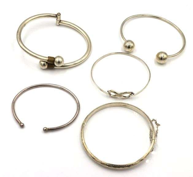 Vintage 925 sterling silver group lot of 5 cuff bangles. The total weight of the lot is 55.9 grams.