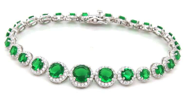 925 Sterling silver round green and white cubic zirconia link tennis 7-inch bracelet. The total weight of the bracelet is 13.8 grams.