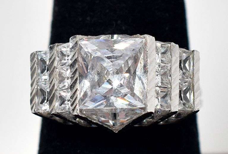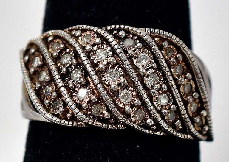 Victorian natural emeralds and diamond accent ring on silver, size: 9.5