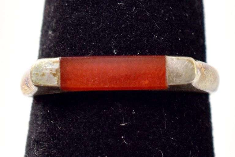 Red Gemstone Ring in Sterling Silver. This adorable silver ring displays a rectangle cut red gemstone in a bar setting. The size of this ring is 5 1/2. Total weight is 2.8 grams.