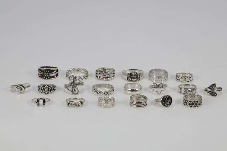 Total Weight: 81.1 grams .925 Sterling Silver Curated 20 Ring Lot (CZ's/Simulated Stones)