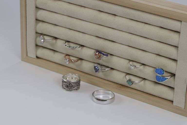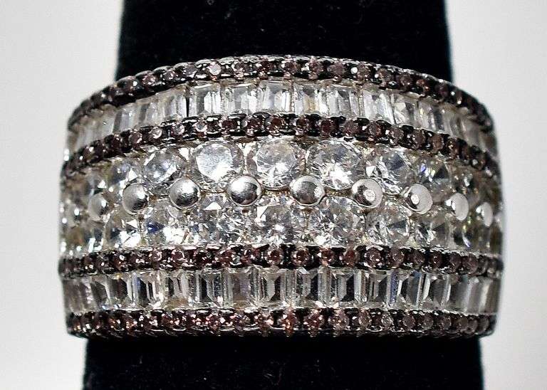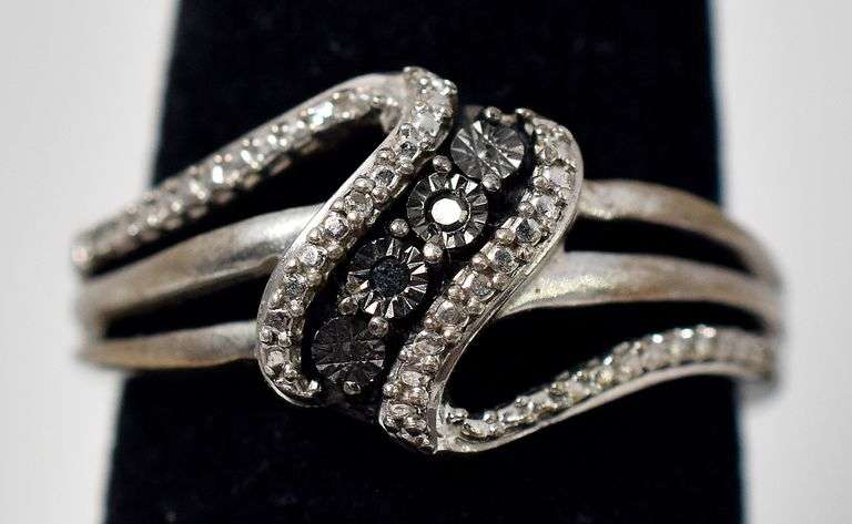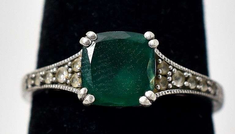 Victorian natural emeralds and diamond accent ring on silver, size: 8.5