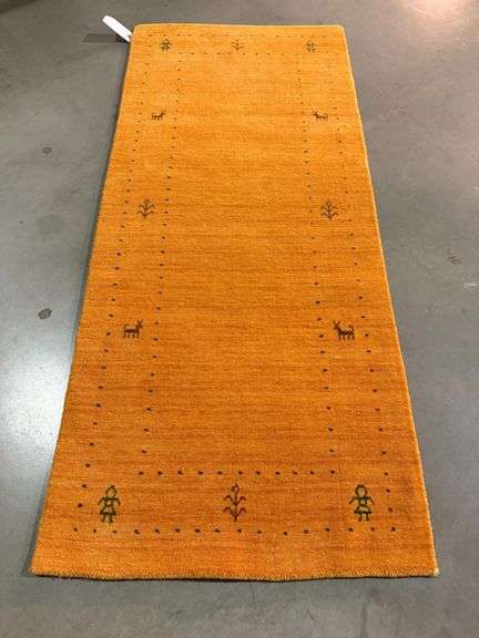 2.6x6 Exquisite Gabeh Runner Luxerious Natural Wool Sheen Pile in Yellow Orange Color Hand Knotted in India