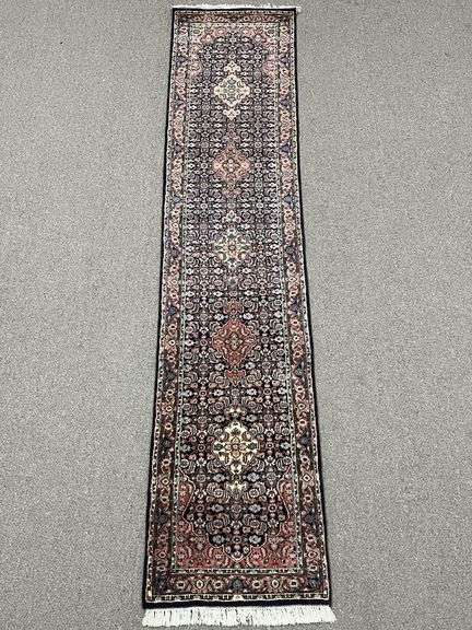 3'.8"X 14'.0" eye catching Authentic Persian Hamedan , in muted rose red multi accent colors, Vege dye Hand Knotted in Iran 100% Natural wool pile