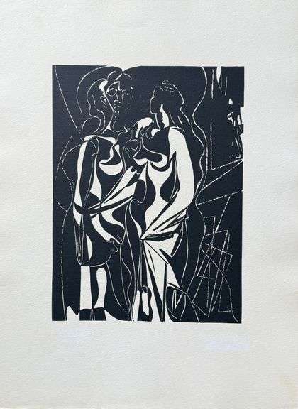 Pablo Picasso Au Baiser d'Avignon Lithograph from 1972 Portfolio. Romantic Expression with plain color palate. First developed in Paris and printed by Au Vent D'Arles.