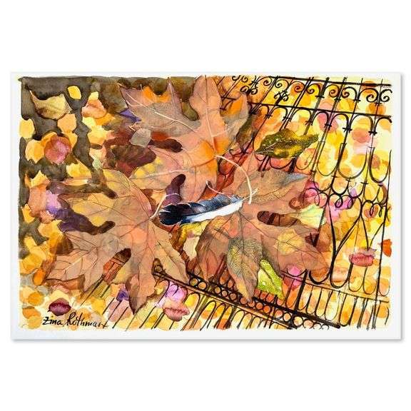 This is an untitled original painting on paper by Zina Roitman. The piece is hand signed and comes with a letter of authenticity. Measures approximately 15" x 21.5".