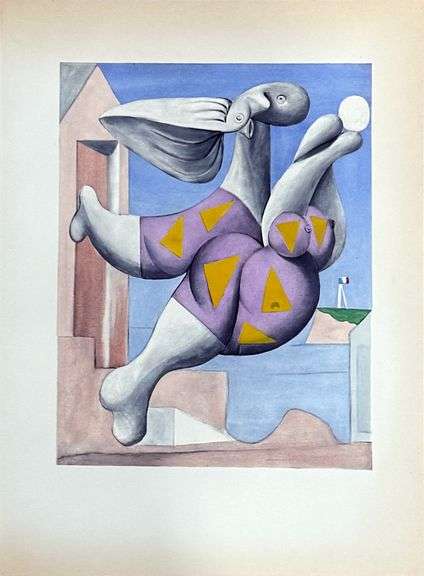 Collectible vintage color plate by Pablo Picasso (Spanish 1881-1973) published by Lowe & B. Hould, and printed in Spain. This artwork has been professionally framed with a golden ornate wooden frame, museum matting and uv glass protection.
