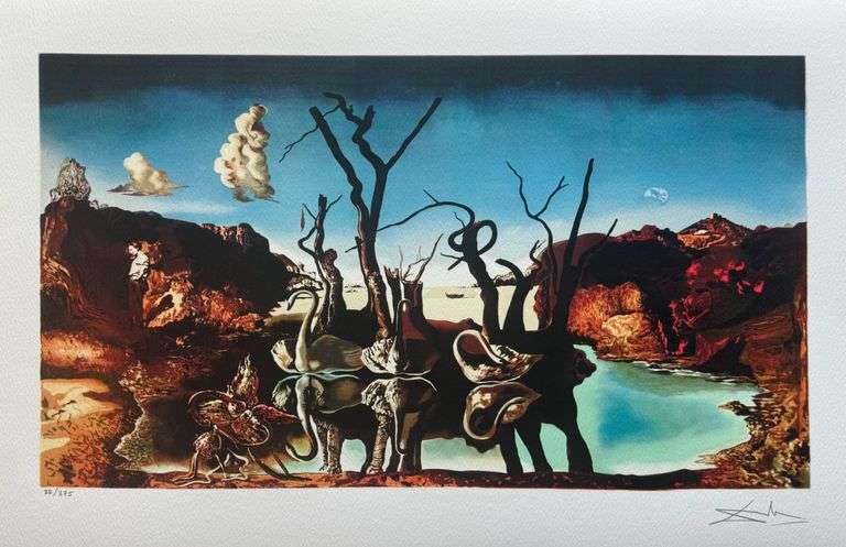 This is a limited edition giclee titled “SWANS REFLECTING ELEPHANTS” by Salvador Dali.
