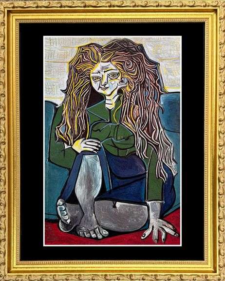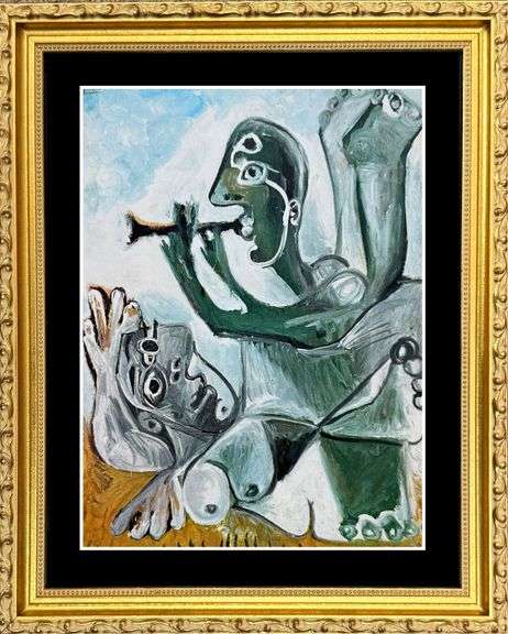 Collectible vintage limited edition color plate circa 1971 from 'Picasso at 90' published by G.P. Putman's Sons, New York. Printed in Switzerland by C.J. Bucher, LTD., Lucerne. This artwork has been professionally framed with a golden gallery frame, museum matting and uv glass protection.