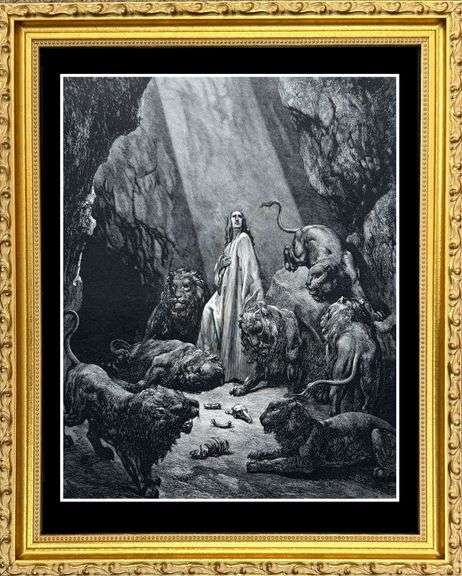 Highly collectible rare antique black and white plate circa 1880 by Gustav Dore. This 140+ year old plate is from The Bible Gallery, published by Cressell & Company, New York. Printed in New York by W.M. T. Hunter. This artwork comes framed with a solid wood gallery frame, UV glass protection and black museum board.