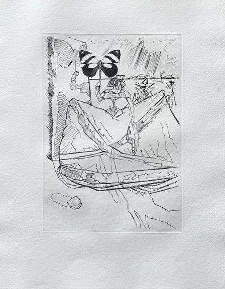 Highly collectible and rare Salvador Dalí wood engraving on Arches paper with Tricorne Watermark. This rare engraving was executed in 1959, and it is from the 'Le Tricorne' portfolio, published by Editions de Rochet, Monaco. Limited to only 260 editions, this is number 23. Comes unframed with a certificate of authenticity.