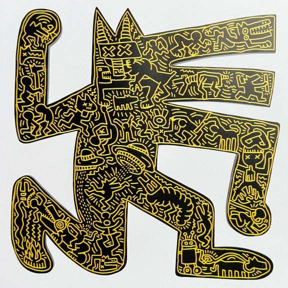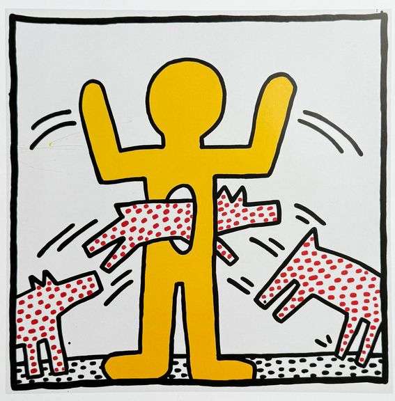 This is a Keith Haring color offset plate from 'Art Is for Everybody'. This plate was published by DelMonico and comes mounted on a 14" x 18" museum board ready for framing.