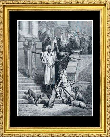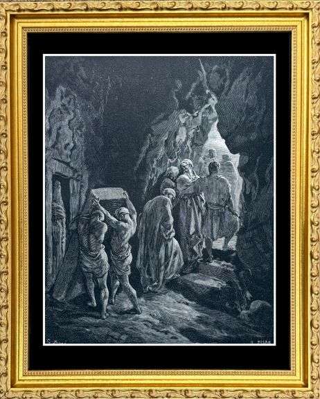 Highly collectible rare antique black and white plate circa 1880 by Gustav Dore. This 140+ year old plate is from The Bible Gallery, published by Cressell & Company, New York. Printed in New York by W.M. T. Hunter. This artwork comes framed with a solid wood gallery frame, UV glass protection and black museum board.