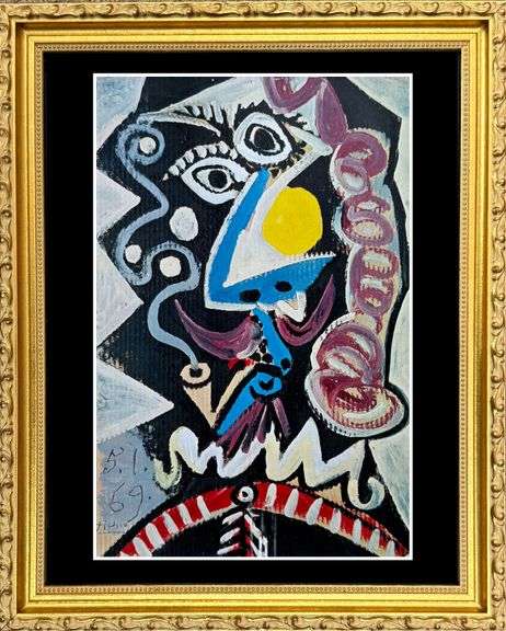 Collectible vintage limited edition color plate by Pablo Picasso. This artwork has been professionally framed with a golden gallery frame, museum matting and uv glass protection.