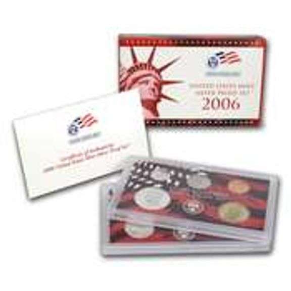 2006 Silver Proof Set Comes with regular silver set and proof silver quarters. Part of a group of around 50 later date sets. Not checked gems or for anything