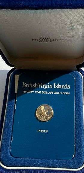 British Virgin Islands Gold 25 Dollars KM 27 1980 FM (P) 0.5000 Fine ; Nice spotless frosty unc with mirror surfaces Original box Weight: 1.5000g ; AGW: 0.0241oz .