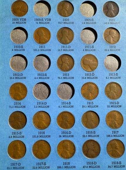 Nice 1909-1940 Partial Lincoln Set. Missing Keys but mostly complete. Clean looking set with very few spots. Some small ones seen on 4. All better than full rim plus. Missing S VDB 09 S,10S 11 S 12 DS 13 S 14 DS and 31 S. Generally nicer P dates Mostly all S mints are nicer. and D dates starting in 1917. Nice 15 S,21 S,22 D,24 DS, 25 S 26 D S, 1930 and beyond generally nicer. No ugly coins Book in two parts apart