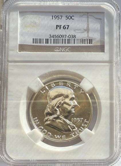 1957 Proof 67 NGC Franklin Half. Strong thick frosting on both sides Spotless lively surfaces.Much nicer than photos Slabs can be tricky