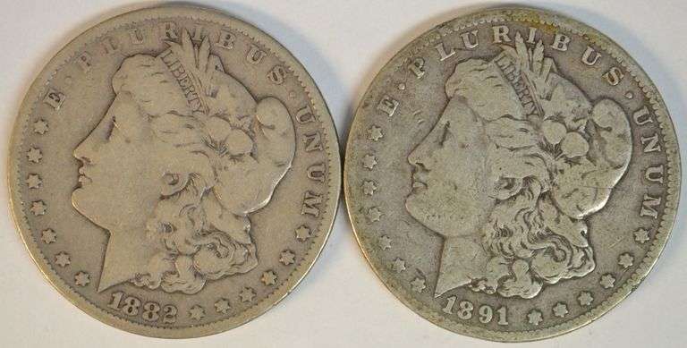Scarce 1882-CC and 1891-CC Morgan Silver Dollars in collectible circulated conditions.