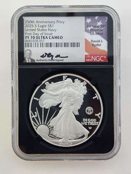 2025-S Proof Eagle 250th Anniversary Of United States Navy, NGC PF70 Ultra Cameo FDOI