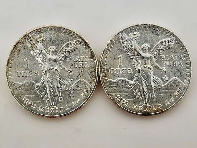 2 Pure .999 Fine Silver 1 Troy Oz Hecla Mining Company pcs dated 1982 in custom capsules.