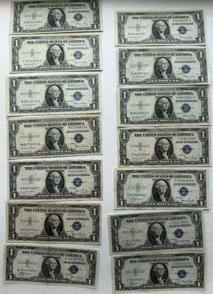 14 Slider 1935A C D E $1 Silver Certificates Should be decent and fairly clean Not checked for anything else. No pin holes or tears