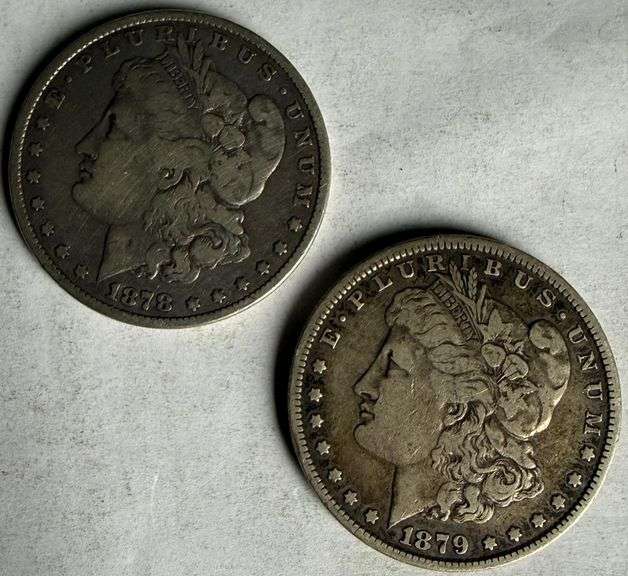 1878 1879 Circulated Morgans. Popular early dates. Both raw , toned and about 3/4 full wings See photos