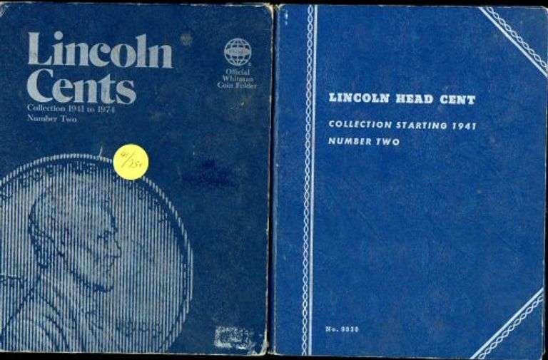 Two Wheat Cent short set albums containing every issue from 1941 through 1974, with one of the albums going all the way to 1977 (not including the 1955 Double Die), all housed in Whitman blue albums.