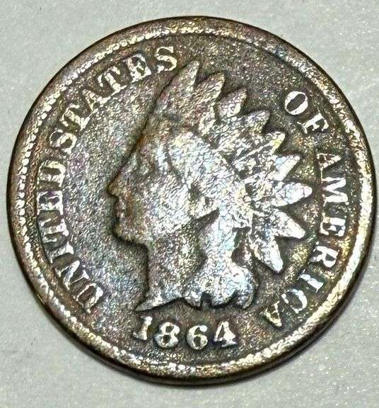 Semi Key Date 1864 L On Ribbon Indian Cent. Full rim and a little feather top detail. Some decent lines in the shield. Nice color. Always a space in the book for one. Hard to photo for some reason. New photo. Still nicer than photo