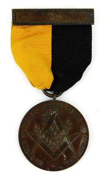 Medal is 1-1/8", suspended on ribbon and bar pin, 2-3/4". Not polished. Hallmarked.