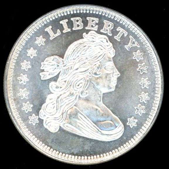 Lovely BU Silver Round weighing one troy ounce and designed after the US Bust Dollar.
