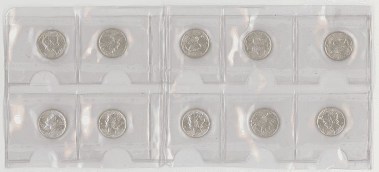 12 Slider or Uncirculated Raw Mercury Dimes. From a lot of over 500. Not searched for anything. Just hand counted.Scan saw few spots Just some occasional light toning and one or two mint marks.Nice coins. Probably a lot of 1940 era date but not checked for anythings Stock photo
