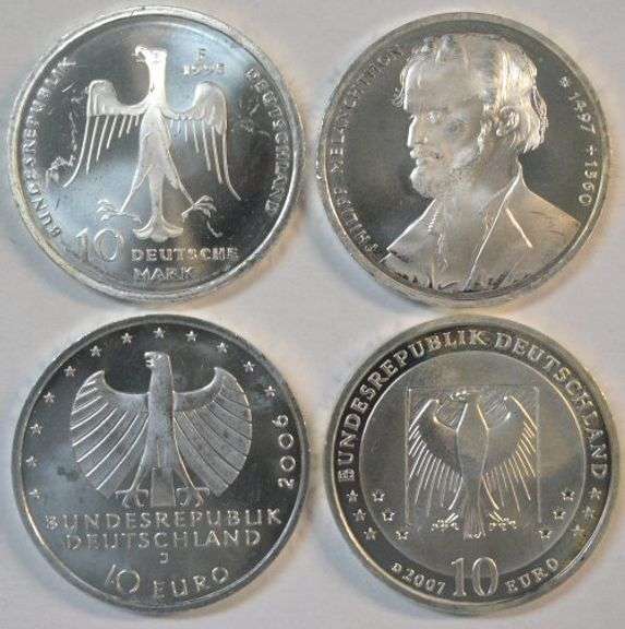 Gem Prooflike BU SILVER 1995 & 1997 German 10 Marks and 2005 & 2006 10 Euros.