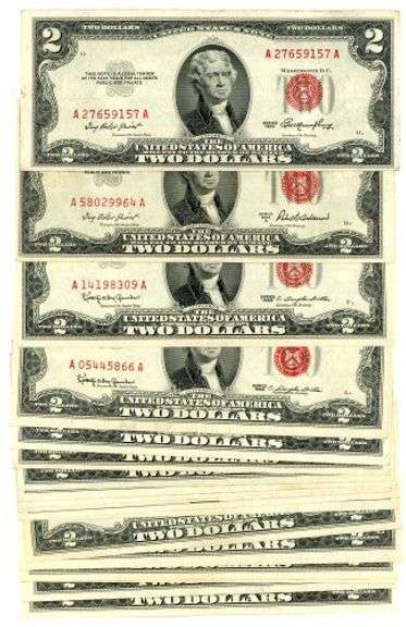 18 Nicer mixed 1953 & 1963 Series $2 Red Seals in XF/AU conditions.