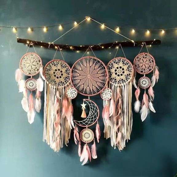 Beautifully crafted with macrame weaving, feathers, and metal rings. Symbolizing protection and good fortune, these moon-inspired dream catchers are designed to ward off bad dreams and invite tranquility.