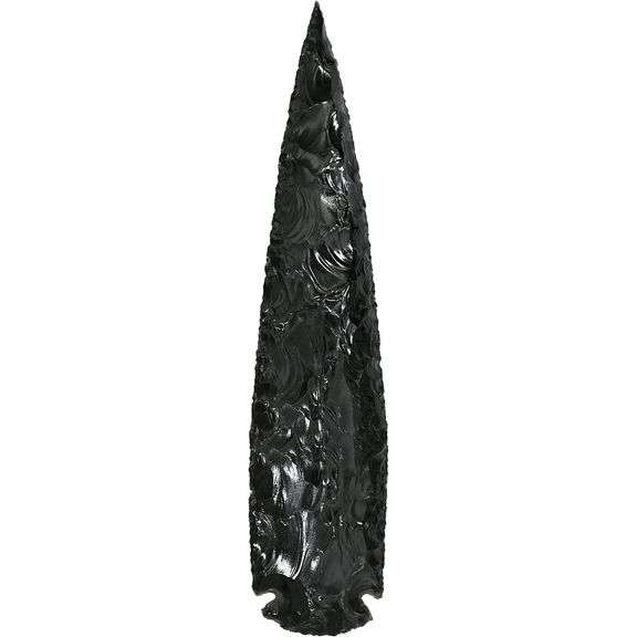 Hand-carved 100% natural, earth-mined black obsidian. Measuring between 9 to 10 inches long. Similar item was once used in battle for its sharpness.