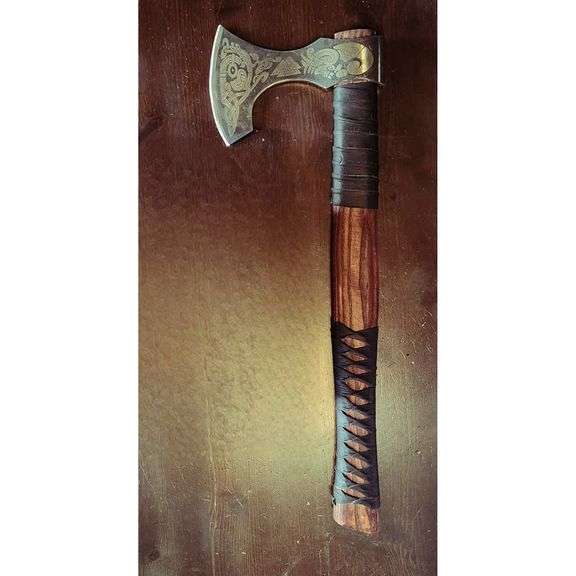 Hand-forged Viking axe with traditional Norse craftsmanship. It has a semi-sharp 5-inch bearded blade from carbon steels paired with a smooth 19-inch rosewood handle.