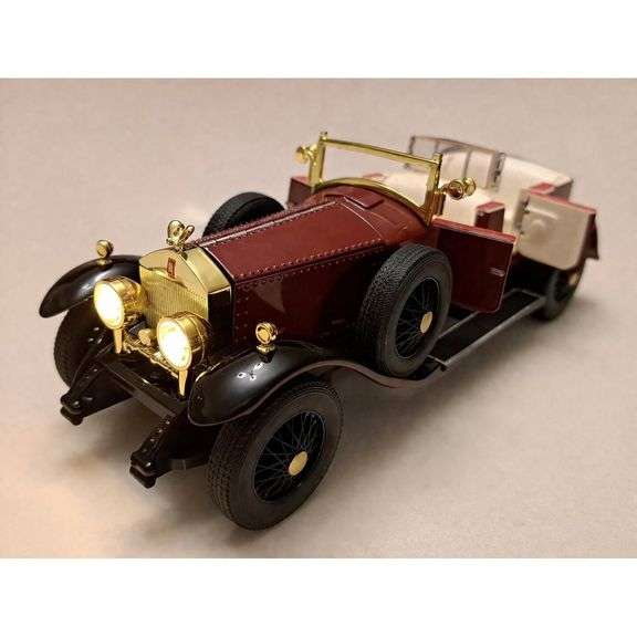 A 1:24 scale diecast car model measuring approximately 8.7 x 3.1 x 3.3 inches, constructed from zinc alloy with some plastic components and rubber tires. The model features multiple functional elements including opening doors, hood, and storage sections, along with a removable roof and adjustable parts for display variation. It includes pull-back action, working suspension, and built-in light and sound effects activated by interaction.