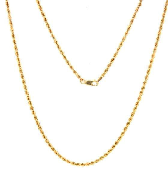 18KT Yellow Gold 2MM Rope Chain Necklace. 3.1 Grams. 20.5 inches