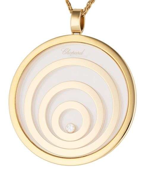 Chopard 0.10ct Diamond Large Spirit Heart Double Strand Pendant Necklace in 18K Yellow gold. Clarity: VVS1. Color: E. Pendant Diameter: Approx. 41.0 MM. Necklace Length: Approx. 18.0 Inches. Weight: 44.20 Grams.Stamped: Chopard, 750.