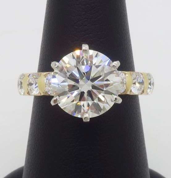 Classic six-prong solitaire setting featuring a gorgeous GIA certified, 4.19ct Round Brilliant cut diamond.