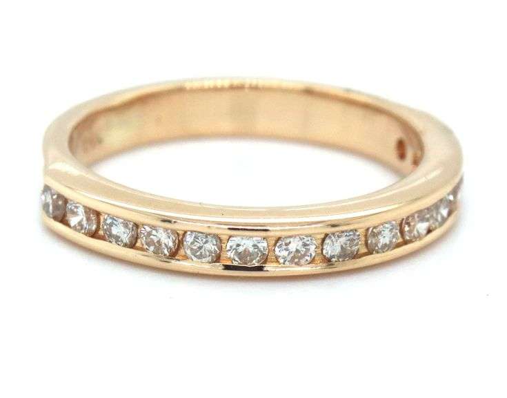 14kt Yellow gold approximate 0.50ctw channel set diamond band. Color J-K. Clarity SI2-I1. Total weight of band 2.60 grams. Ring size 8"