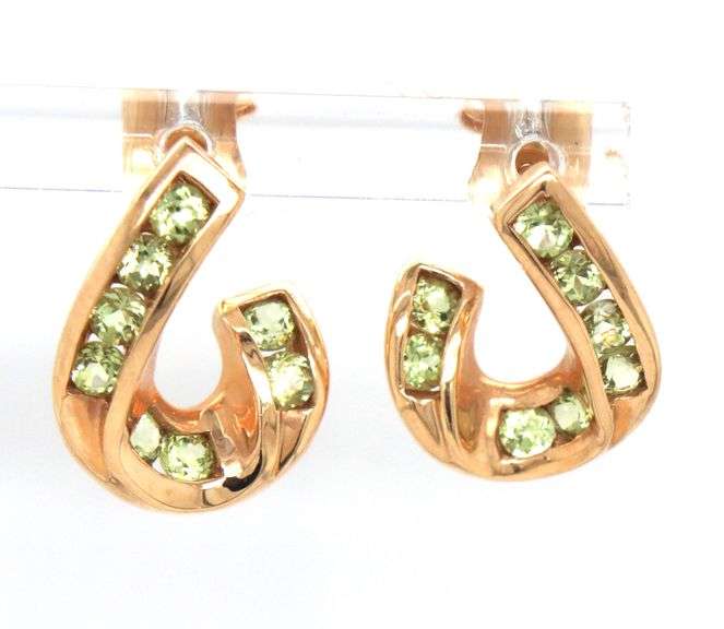 Fashionable 14k yellow gold earrings each with a swirl of 8 peridots. The earrings weigh 4.0 grams.