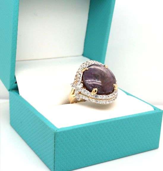 Fabulous Massive 18.51CTS Cabochon-Cut Star Ruby and 1.65CTW Round Brilliant Cut White Sapphire Ring in 14K Yellow Gold Over Sterling Silver. This item weights 8.96 grams and fits a finger size 8.5". Comes with AIG cert.