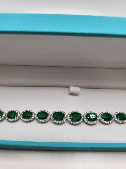 Extremely fine 18.4G Platinum and 14.19 ctw GGA certfied Emerald and diamond Bracelet. Also accompanied by a GGA , this piece has been professionally appraised for retail replacement value. Please note: the appraisal reflects retail pricing and does not represent auction or resale value