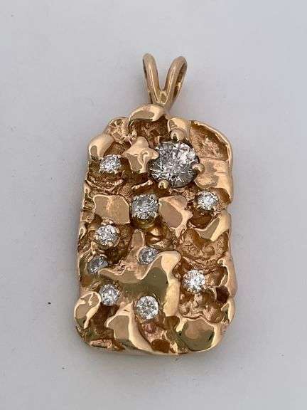 CERTIFIED 14K YELLOW GOLD DIAMOND NUGGET PENDANT. IT HAS ALL NATURAL (NOT LAB GROWN) ROUND BRILLIANT CUT DIAMONDS WITH A TOTAL WEIGHT OF 1.00 CARAT. DIAMONDS ARE F-H COLOR AND SI CLARITY. PENDANT IS 1.00 INCH FROM TOP TO BOTTOM AND 1/2 OF AN INCH WIDE. GOLD WEIGHT IS 7.7 GRAMS, SOLID GOLD. IN MINT CONDITION . HOOK CAN FIT A CHAIN UP TO 3.5MM WIDE. CERTIFIED BY C.G.L, CERTIFICATE #2005520049155574. CAN BE VERIFIED AT CGL-LABS.COM