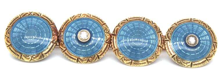 Beautifully made 18k yellow gold flower brooch with blue, green, white enamel, and diamond accents. The brooch is heavy weighing 15.5 grams.
