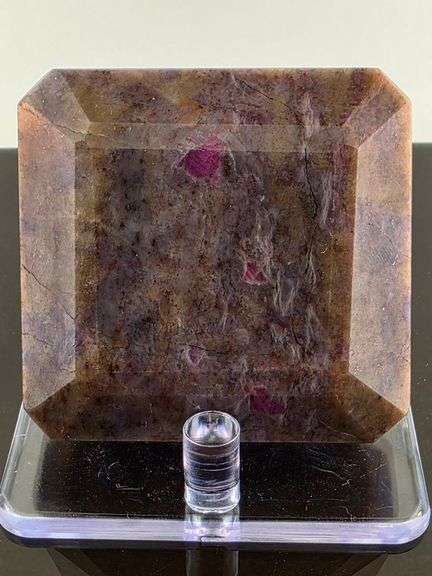 Get ready to be impressed with this large collectors boulder ruby. Just like Australian a boulder opals, this piece showcases pure ruby crystal captured in natural matrix. And it's huge! Weighing in at a whopping 1,008 carats and measuring 56.5mm x 54.1mm x 27.7mm, this collectors piece is large enough to use for self defense! We wouldn't recommend it, but it's nice to know its there if needed. It's so big it comes with its own stand! But the really amazing part is the fact that ruby will fluoresce under UV lighting, as you can see in the pictures, and even comes with its own UV flashlight so you can show it off. This is an amazing piece. Untreated!