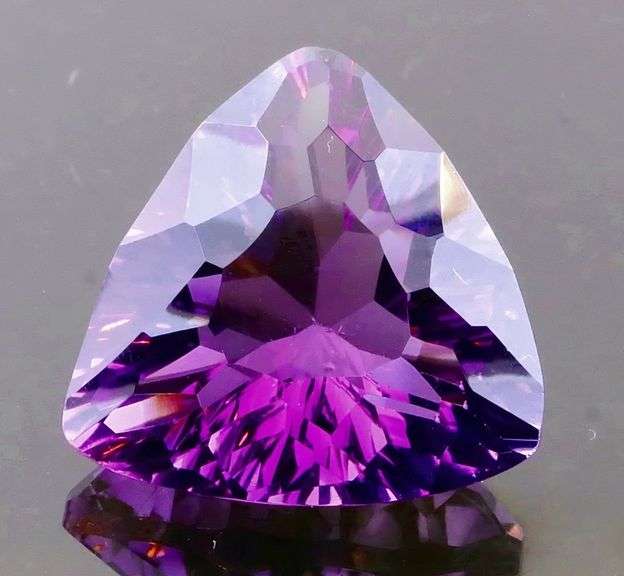 Get ready for an amazing light show! The fantastic eye clarity of this piece combined with its modern concave cuts results in non-stop needle fine flashing. And the color! This amazing amethyst shows a velvety violet hue with a strong tone and preferred medium saturation, but that's not all. In different lighting you can see its fine line flashing produce violet pinks and lavenders while adding a touch of violet blue to its undertone. It very well cut with outstanding symmetry, and measures a whopping 15.6mm x 14.9mm x 9.3mm. Sourced from Bolivia. Untreated!